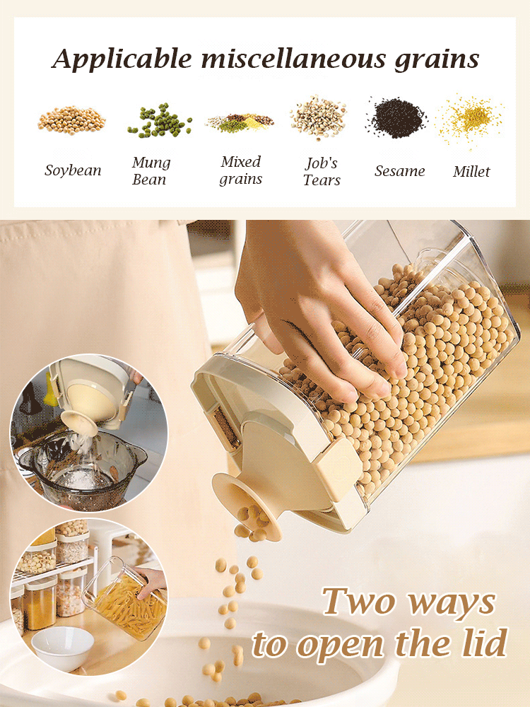 FOLDABLE SILICONE POUR SPOUT – The flexible silicone pour spout ensures easy, mess-free pouring of cereal, grains, or snacks without spills, and conveniently folds away when not in use to save space.
